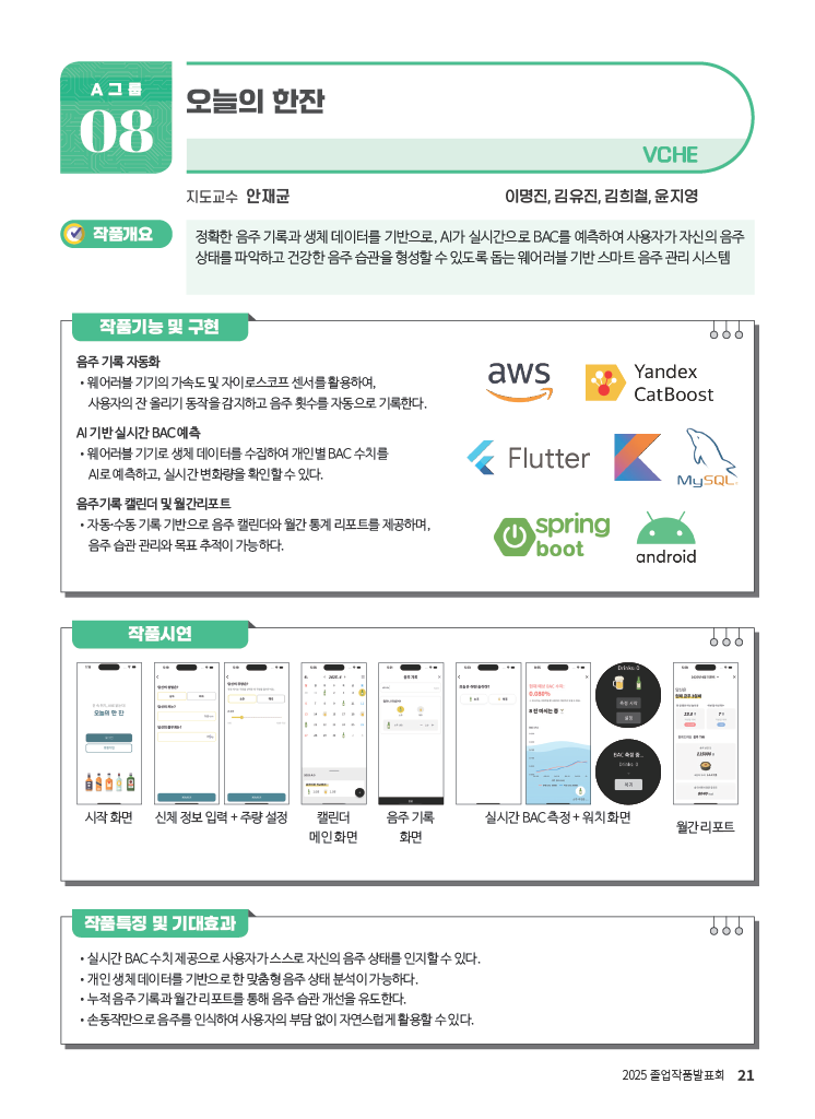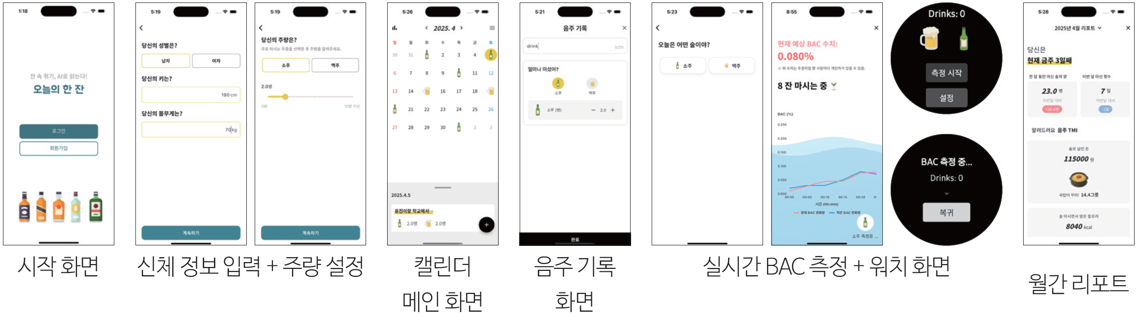 • 누적 음주 기록과 월간 리포트를 통해 음주 습관 개선을 유도한다.