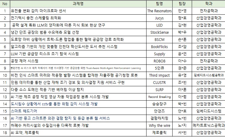 1. 2026-1학기 산학 캡스톤 디자인 경진대회 참여팀 목록 : 총18팀