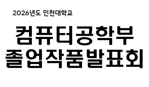인천대학교 컴퓨터공학부에서는 2026년도 3~4학년 학부생(주/야간)을 대상으로 3~4년간 이수한 교육과정을 통해 개인의 능력 향상 및 결과를 보여줄 수 있는 졸업작품발표회를 개최합니다.