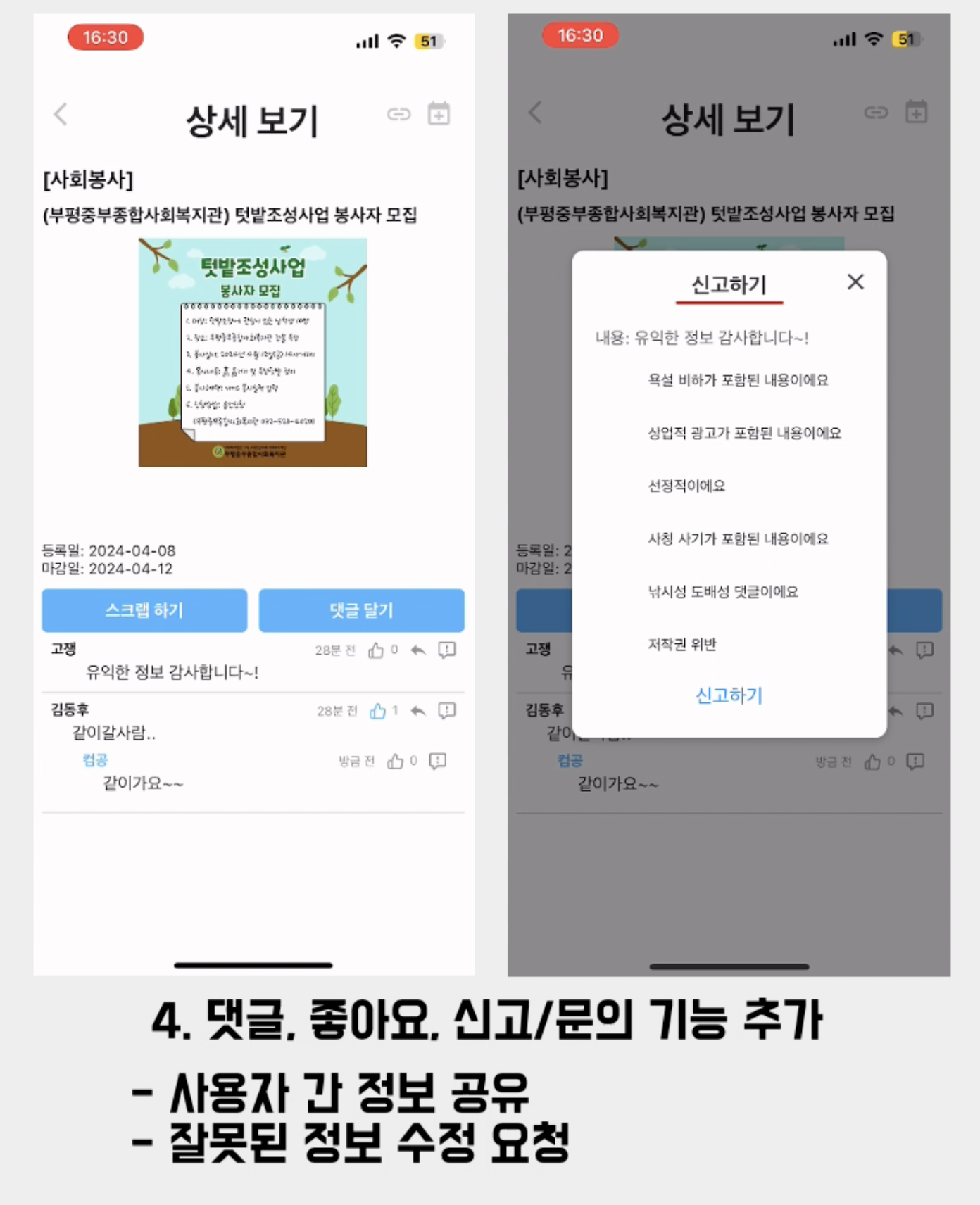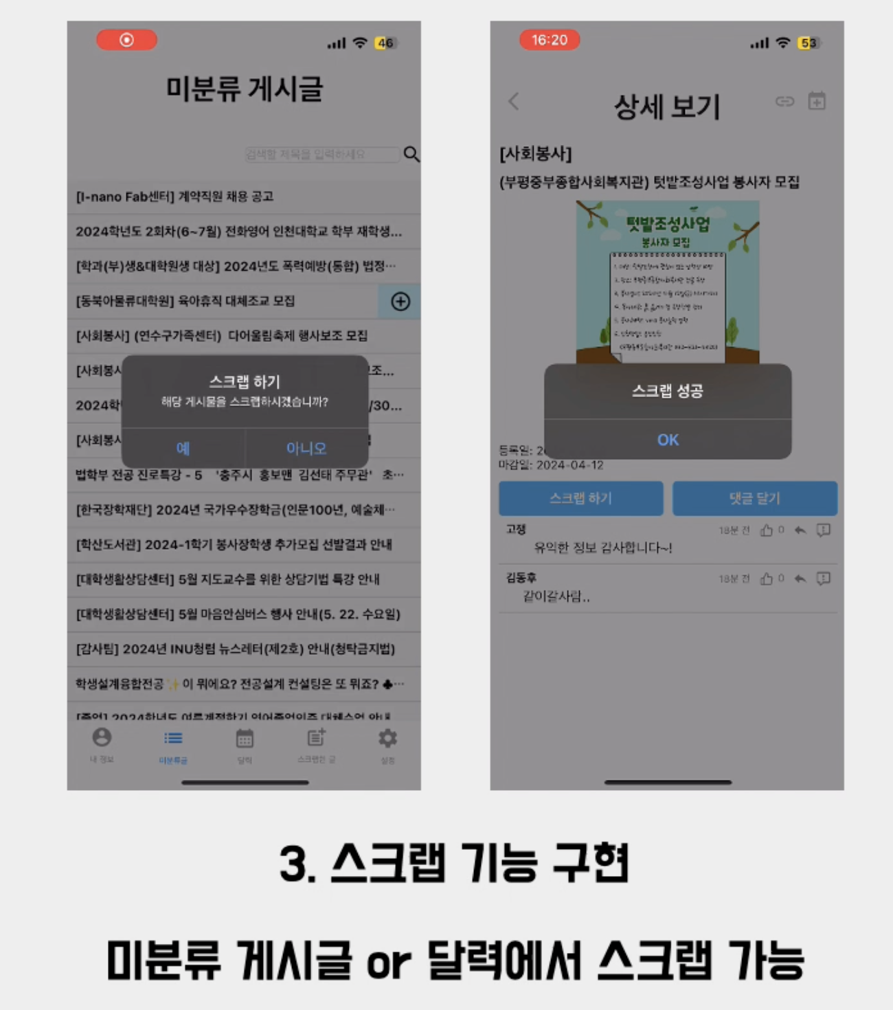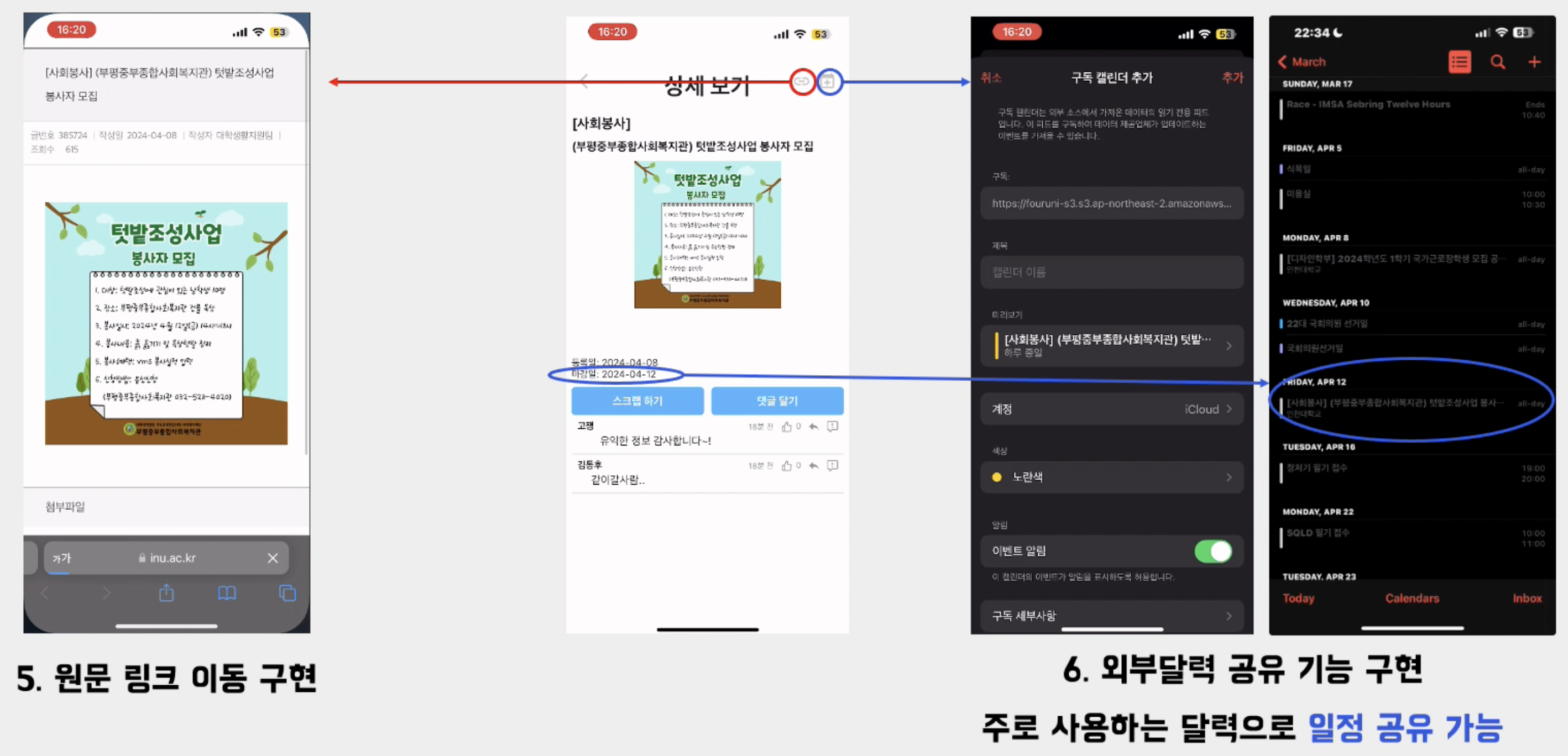 - 원하는 게시글을 외부 달력에 일정으로 저장할 수 있다.