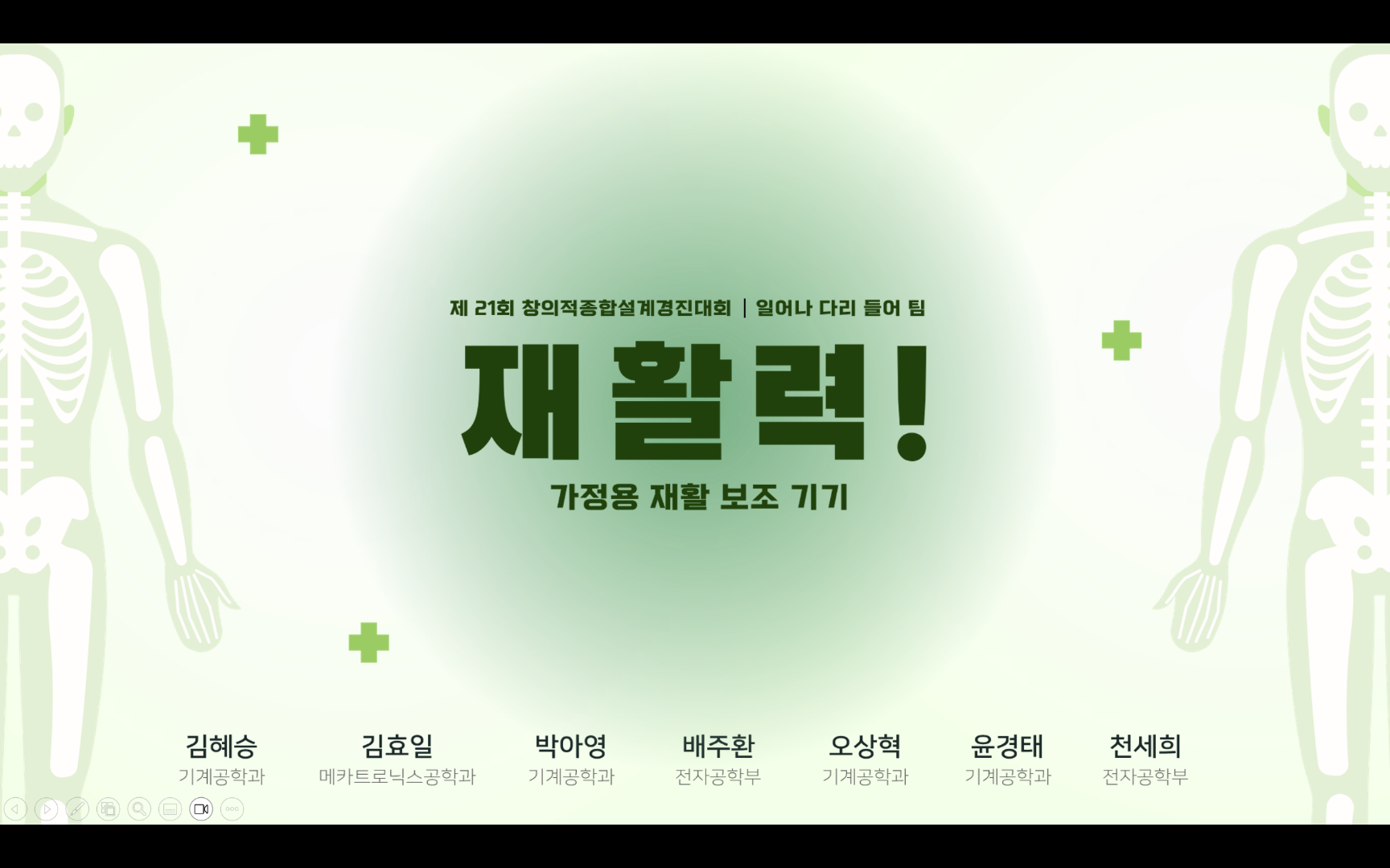 - "재활력!"은 단순한 구조와 가벼운 무게를 갖추어 일반 가정에서도 병원이나 재활 센터와 같은 수준의 재활 운동이 가능하다는 점에서 의의가 있다. 특히 이 기기는 보행 재활을 하기 이전 단계인 기립 재활을 보조할 뿐만 아니라, “다리 뻗어 들어올리기”, “침대를 이용한 무릎 구부리기 운동” 등과 누운 상태에서 수행하는 다양한 하반신 재활 운동도 지원할 수 있어 하나의 기구로 여러 부위의 재활을 돕는다. 또한 단순히 재활 운동을 보조해주는 데 그치지 않고, 사용자 피드백에 따라 단계별로 강도를 조절함으로써 보다 효과적인 훈련이 가능하며, 궁극적으로는 "재활력!"을 이용한 가정에서의 재활 치료와 외래 진료만 병행해도 완치까지 도달할 수 있도록 한다. 사용자가 주로 고령층인 만큼, 리모컨을 이용해 간단하게 조작할 수 있도록 하였다.