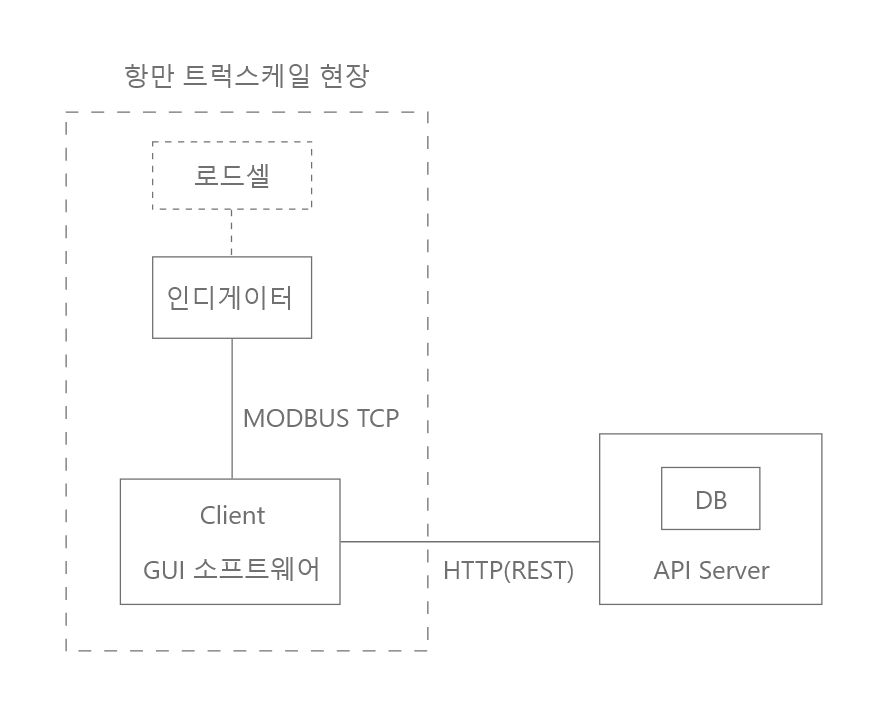 인디게이터와는 MODBUS TCP를 활용하였는데, 추후 Client 시스템 없이 트럭스케일만 단독으로 운영할 수 있는 100% 클라우드 기반의 클라이언트리스 시스템으로의 운영도 가능하도록 설계함.
